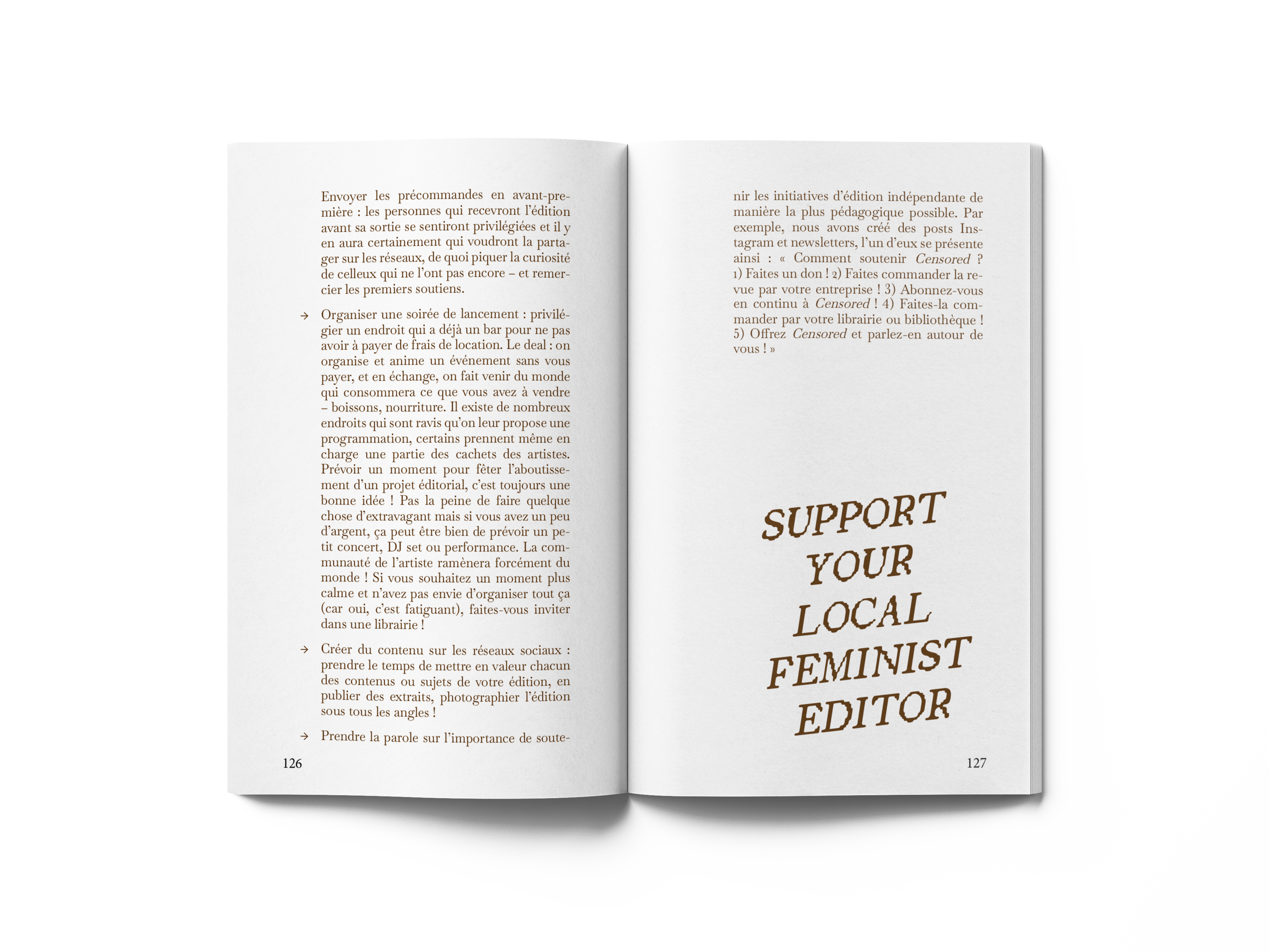 L’objectif de ce livre est de divulger et transmettre la méthode employée pour éditer et publier, de la maquette Indesign à la promotion, en passant par l’organisation interne. Accessibilité, budget, droits, écriture inclusive, La Poste, graphisme, obligations légales… Au total, plus de 60 mots pour transmettre leur vision, hacks et autres stratagèmes. Ce livre est le fruit d’un constat : alors que nous sommes nombreuxses à voir dans l’imprimé un pouvoir révolutionnaire et un terrain d’expression créative et de lutte - difficile d’obtenir des informations pour apprendre à créer un zine, une revue soi-même, à diffuser massivement ou localement. L’édition ne se contente pas de délivrer une recette concrète, mais présente également des observations et réflexions après cinq années d’exploration des nombreuses stratégies visant à amplifier les voix en marge et à transformer les imaginaires : du mouvement des riot grrrls à la création de structures plus officielles.